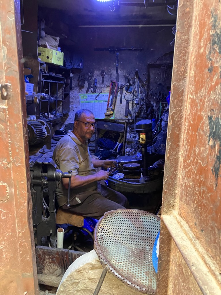 Ganz schön beeindruckend die Stadt Fes. Daher zog es uns nochmals in die Medina, diesmal auf eigene Faust. Ich wollte nochmals zu einem bestimmten Geschäft und wir haben es auch gefunden. Beim Rückweg zum blauen Tor, gingen wir etwas im Kreis, aber ein Junge erklärte uns die Symbolik der Staßenbeschilderung – quadratisches Schild = die Gasse ist offen und geht weiter; sechseckiges Straßenschild = Sackgasse. Diese Information war sehr hilfreich. Tierschützer und Tierliebhaber bitte bei den nächsten Bildern nicht hinschauen, speziell bei den „fangfischen“ Hühnern. Der Händler hat in seinem Geschäft lebendes Federvieh. Man sucht ein Hendl aus, Kehle wird durchgeschnitten mit dem Messer, mit dem Kopf voran in die Blechdose zum ausbluten und dann ab in die Rupfmaschine zum entfiedern. Fertig ist das fangfische Huhn.