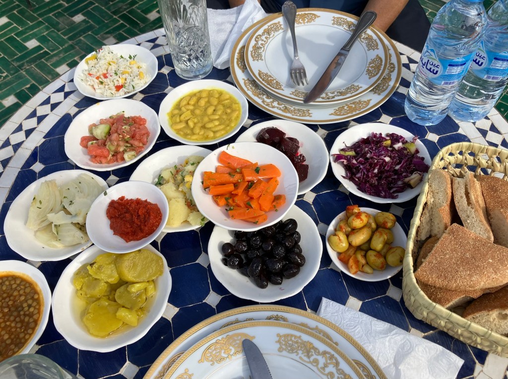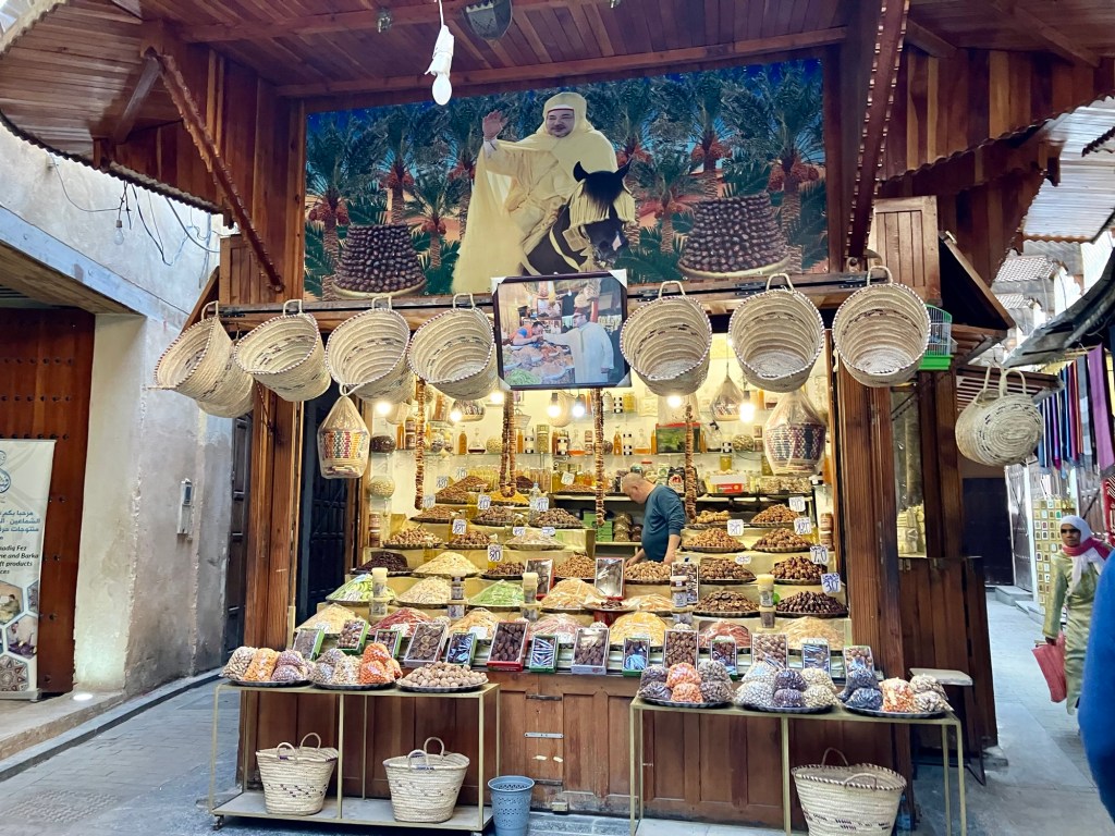 Wir hatten uns im Vorfeld schon auf den Besuch der Stadt Fes vorbereitet und einen Guide mit einem Auto organisiert. Aber bevor es so richtig los ging, waren noch einige profane Dinge zu erledigen. Der Friseurbesuch hatte bei mir oberste Priorität. Die Hausdame schickte mich zum Coiffeur ihres Vertrauens unweit der Unterkunft. Der Bock-Chef gönnte sich eine richtige Rasur beim Barber. Der Friseur war in meinen Augen ein Künstler. Ich fühlte mich wunderschön. Und der Preis für das Full-Service war ein Geschenk. Dafür würden mir in Österreich höchstens die Haare ein Mal durchgekämmt. Ich war richtig happy. Hatima – die Perle des Riads – verwöhnte uns am Abend mit köstlichen marokkanischen Spezialitäten, sicher eines der besten Essen seit wir in Marokko sind. Am nächsten Morgen gönnten wir uns das Verwöhn-Programm im hauseigenem Hammam. Wir wurden abgeschrubbt und mit heissem Wasser angeschüttet. Das war eine ganz andere Zeremonie, aber sehr wohltuend. Und plötzlich die Schrecksekunde, wusch ein Kübel heisses Wasser über die Haare und es folgte eine Kopfmassage. Futsch die schöne Haarpracht! Nach der Ganzkörpermassage pilgerte ich wieder zum Friseur. Diesmal war der Preis noch moderater. Und ich verrate es gleich, vor der Abreise aus Fes war ich nochmals und dann hatte ich schon den Stammkundenpreis – Waschen und Fönen €5,00! Nach dem Beauty-Programm kümmerte ich mich um unsere Wäsche, denn die letzte Waschmaschine war schon einige Tage her. Im Riad wurde ein Wäscheservice angeboten, wie praktisch.