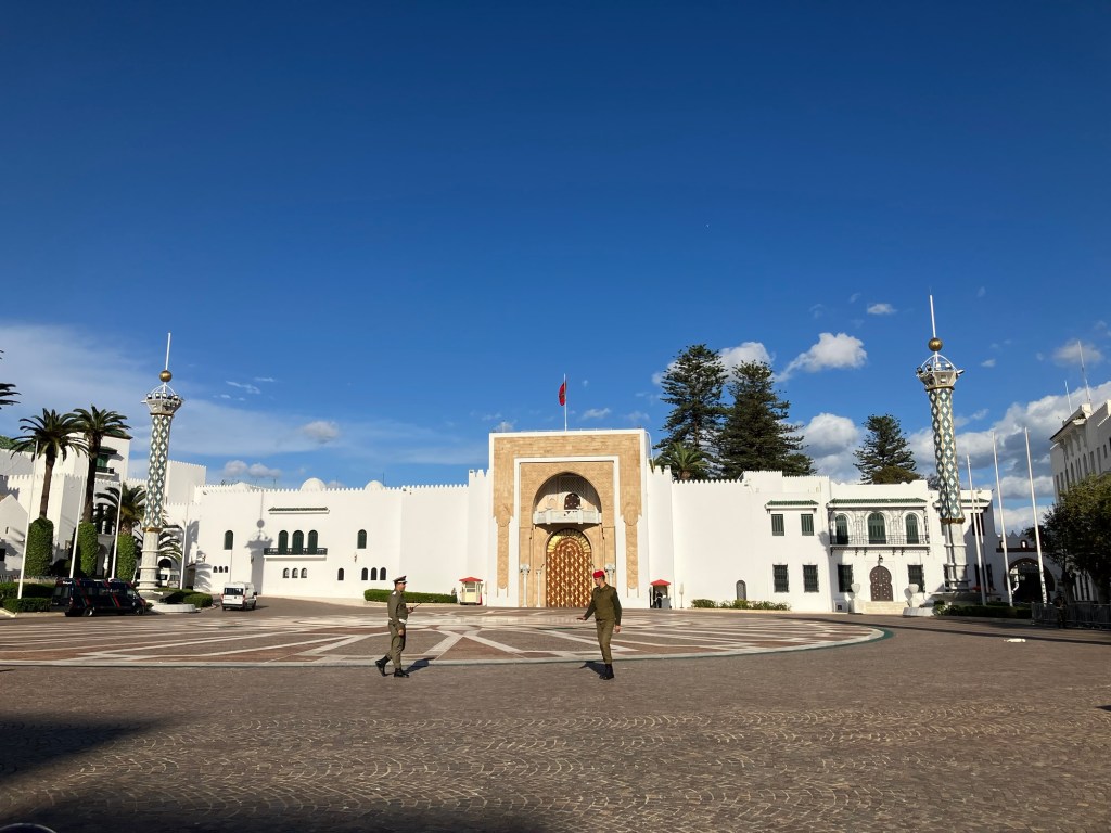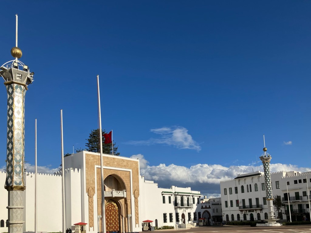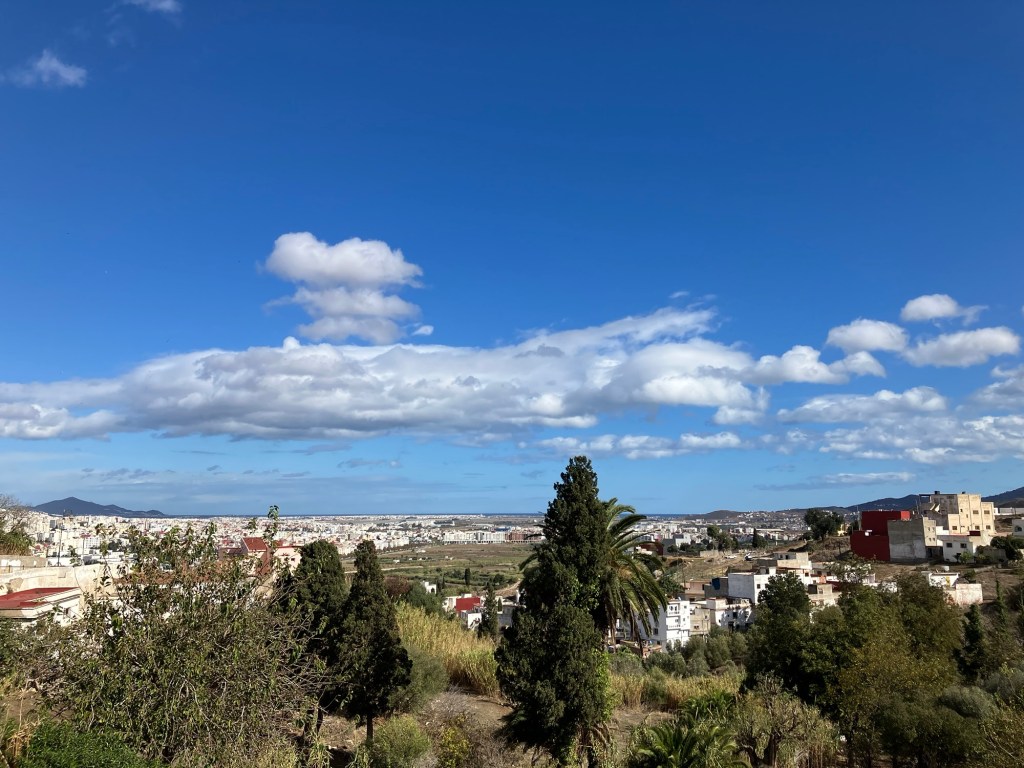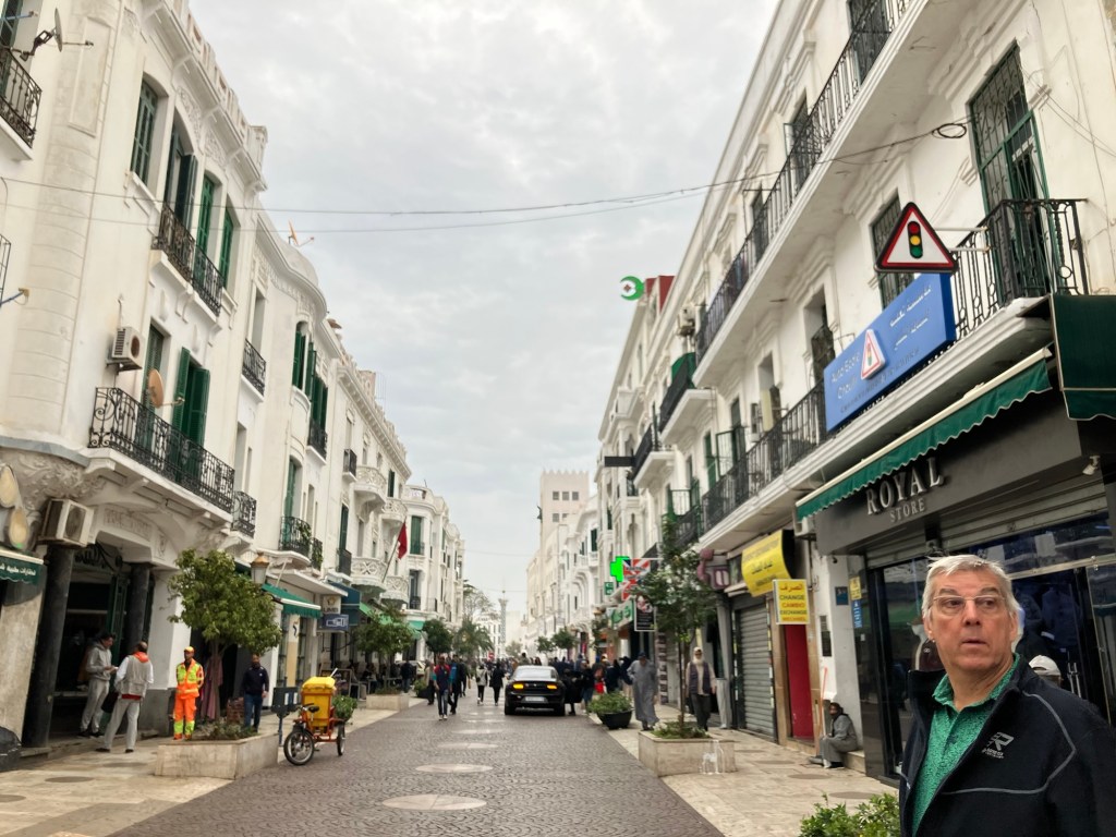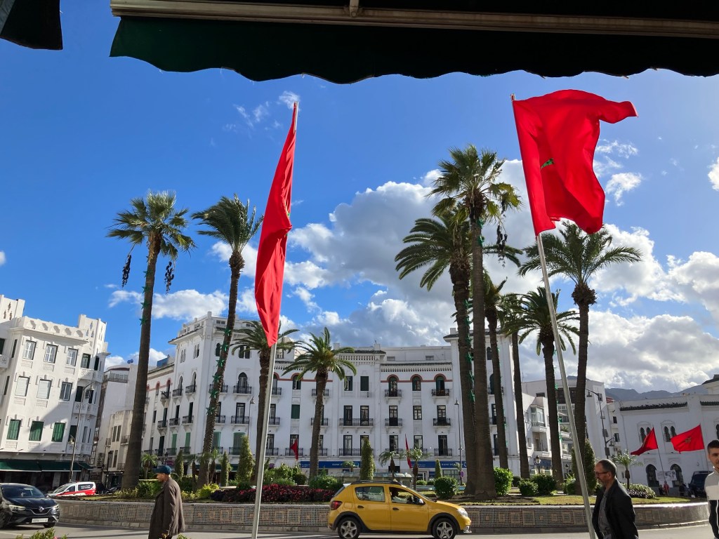 Vorerst war der Himmel noch blau, aber der auffrischende Wind trieb schon schaurige schwarze Wolken über die nördlichen Hügelketten in Richtung Küstenstrasse. Weit war es nicht mehr und gerade rechtzeitig landeten wir am Abend in unserem Riad am Stadtrand von Tetouan, der weißen Taube. Den vielen weißen Häusern verdankt die Stadt den Beinamen. Diesmal hatte sich die WetterApp nicht geirrt. Starker Regen und Sturmböen sorgten für eine unruhige Nacht und kühle herbstliche Temperaturen. Es war Zeit die wärmeren Sachen auszupacken. Die nächsten zwei Tage waren fahrfrei und unaufgeregt. In den Regenpausen schnappten wir uns ein Taxi (Fahrpreis zwischen €1 bis max. €2), fuhren ins Kaffeehaus am Hauptplatz, spazierten in der Medina und in der Fußgängerzone herum, bestaunten kurz den Palast (Sommerresidenz des Königs), tranken Tee, kauften ein Buch für die Fährfahrt und gingen jeden Abend ins gleiche Restaurant essen. Fisch, Pizza, Nudelgerichte und die frischen Salate waren im Maison Montei einfach köstlich. Dem Mille feuille konnte sogar der Bock-Chef nicht widerstehen. Wir hatten den Verdacht, dass die Kellner schon Wetten abschlossen, ob wir am nächsten Tag wieder kommen.