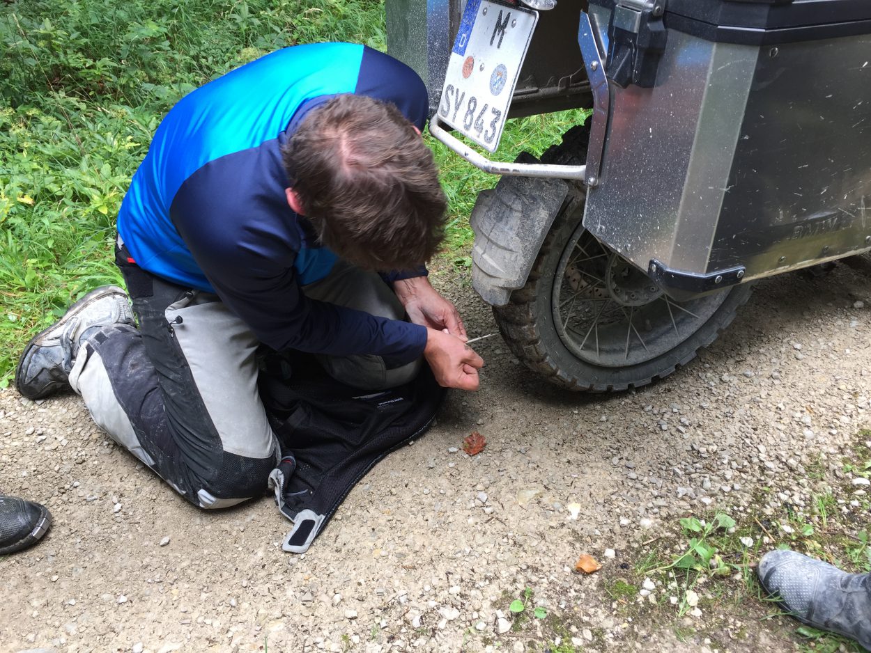 Dirk beim verarzten des Reifens
