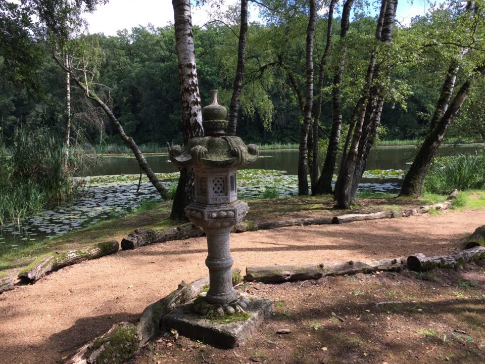 Japanische Laterne am Seerosenteich in Dennenlohe