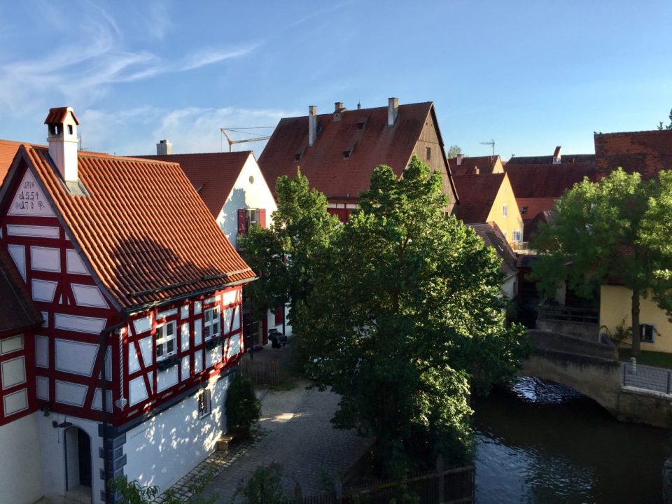Fachwerkhäuser und Mühle in Nördlingen