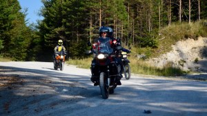 Wir kurven einsam weiter „unter den Flügeln der Falken“ auf der feinen Straße. Nach ein paar Kilometern ist aber dann auch schon Schluß. Offroad mit geringen Asphaltanteilen ist angesagt. Die Landstraße ist in unsere Karte eingezeichnet, das heißt hier aber nicht, dass sie für jedermann befahrbar ist. Die BMW GS 1200 Adventure ist da schon das richtige Fahrzeug. Den Offroadmodus beim Garmin auszuschalten bringt hier gar nichts, weil es oft gar keine andere Alternative gibt. 50 Kilometer waren wir dann höppelig unterwegs.