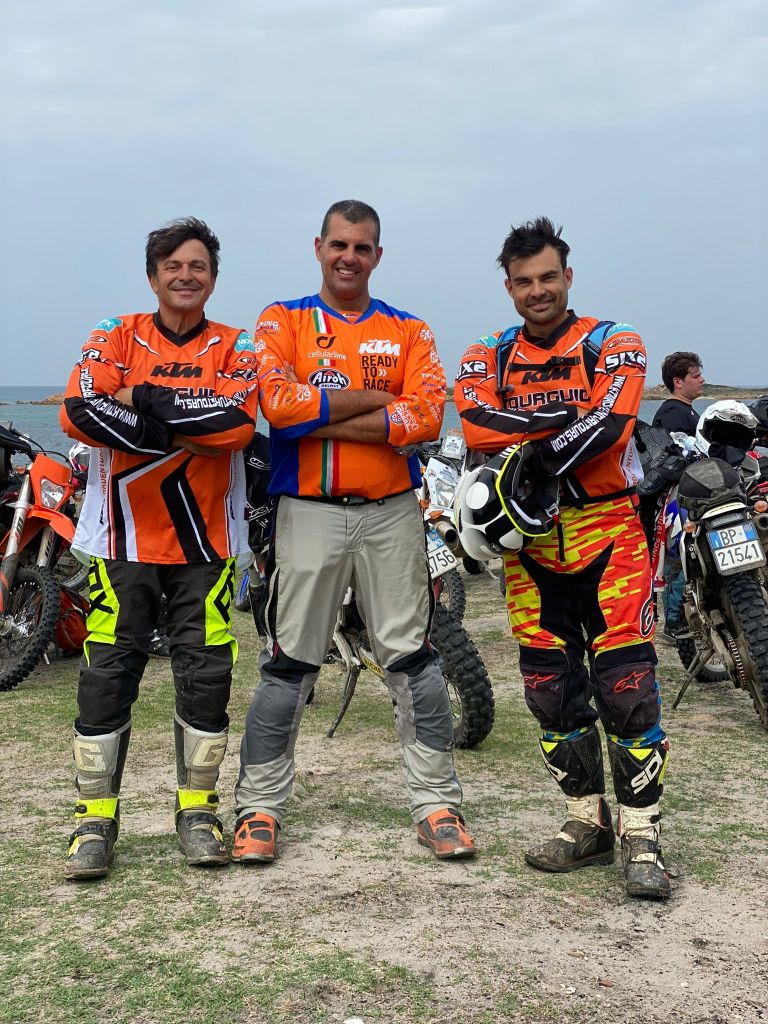 Von Korsika ging es nach Sardinien. Waren wir 2019 schon auf der Insel, so war der Traum vom Bock-Chef, die Insel off-road zu durchqueren. Die Tour von Alessandro Marzi, mit dem wir damals schon einen Tag lang unterwegs waren, sollte das Richtige sein. 30 Maschinen waren am Start in Olbia. Darf ich vorstellen unsere Tourguides: Lorenzo, Alessandro und Riccardo.